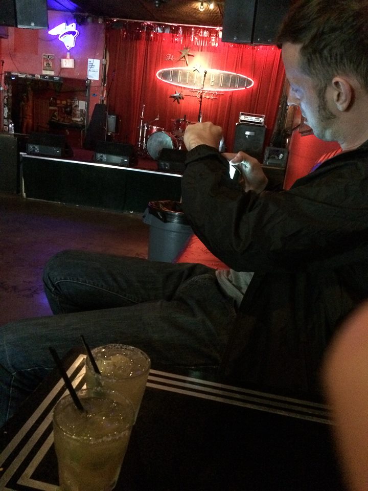 The interior of the Continental Club is quite small. It’s really more of a bar with a small stage than a club proper. Jill and I arrived at “happy hour” and enjoyed delicious margaritas (made with tequila, triple sec and lime juice - none of that “sour mix” b.s.!) for $3.50 a piece. We chatted with the friendly bartender and listened to Guns ‘N Roses’ Appetite for Destruction. Here’s a photo Jill took of me taking a photo of the stage where Mason Jr. (Ellar Coltrane) and his girlfriend Sheena (Zoe Graham) watched the bluegrass band The Austin Steamers play (please note the margaritas in the foreground):