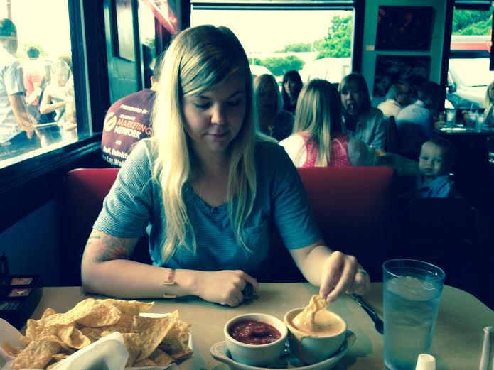 And here’s Jill enjoying some of that famous queso not far from the booth where Mason and Sheena sat: